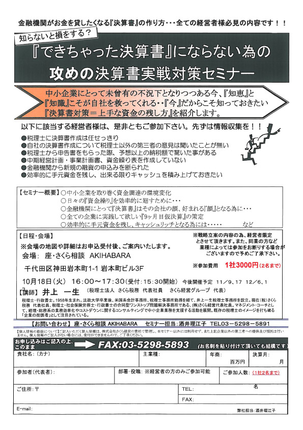 『できちゃった決算書』にならない為の攻めの決算書実践対策セミナー